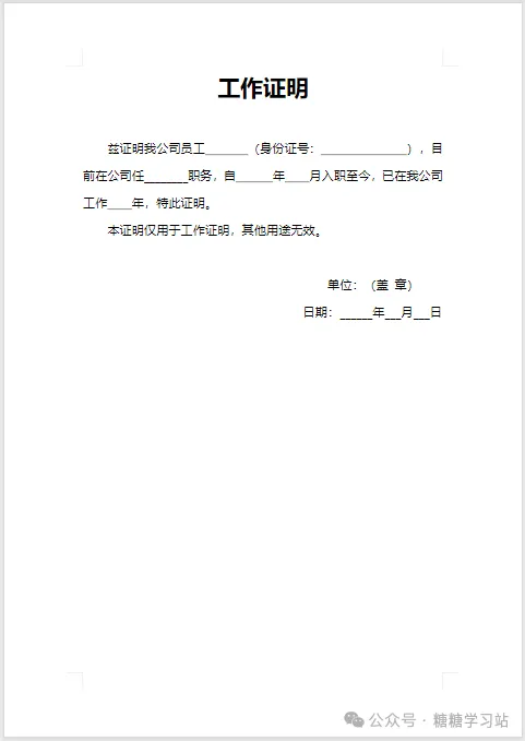 工作证明模版