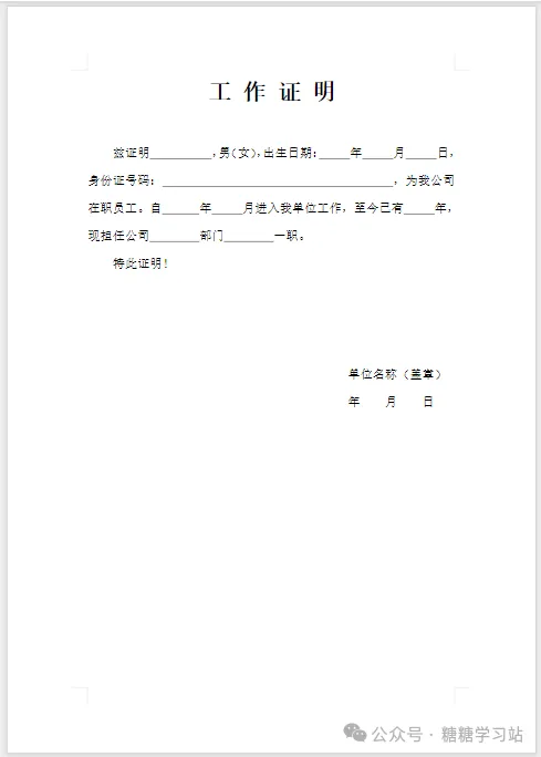 个人单位各种证明文件模板