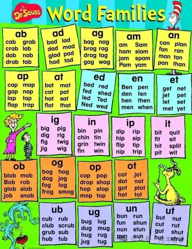 Dr. Suess在他的系列作品中给出了22个最基础的Word Family: