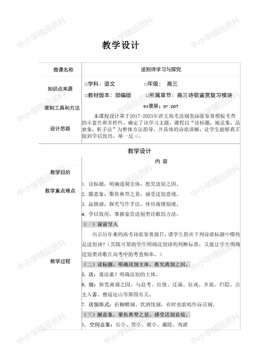 NO.BYG086省微课高中语文《送别诗学习与探究》(教学课件PPT+教学设计word+教学微视频)2023高三部编版