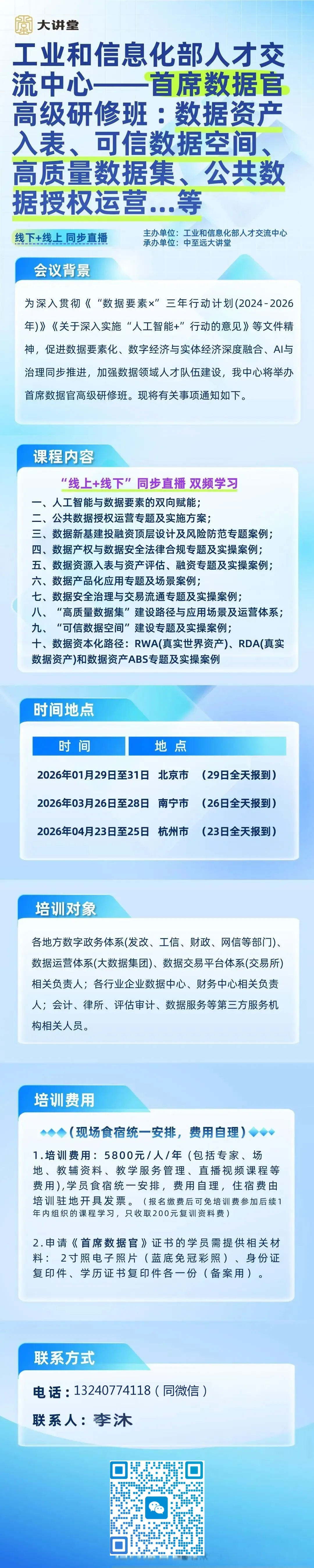 北京-南宁 | 十五五数据发展、资产确权、可信空间流通、公共数据授权、合规开发治理入表实务研修班!李老师15010005895