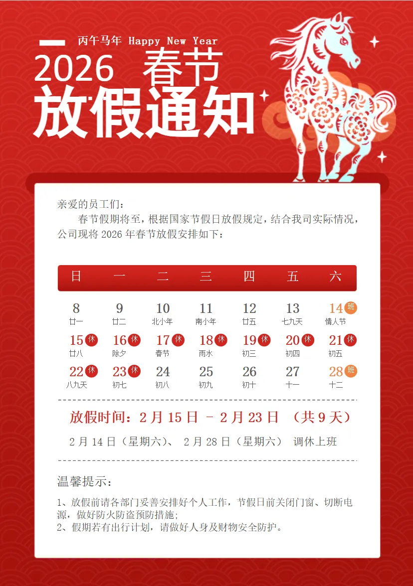 2026马年春节放假通知.docx