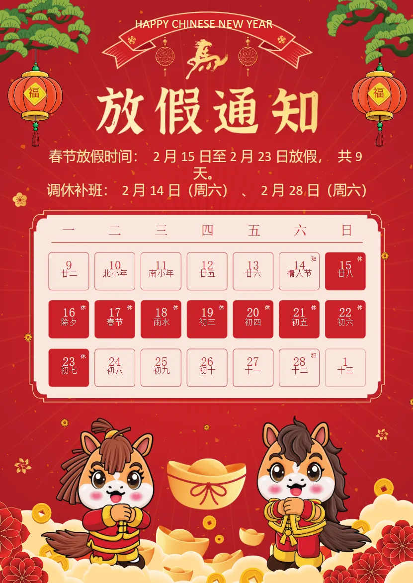 马年春节放假通知过年放假通知公告A4.docx