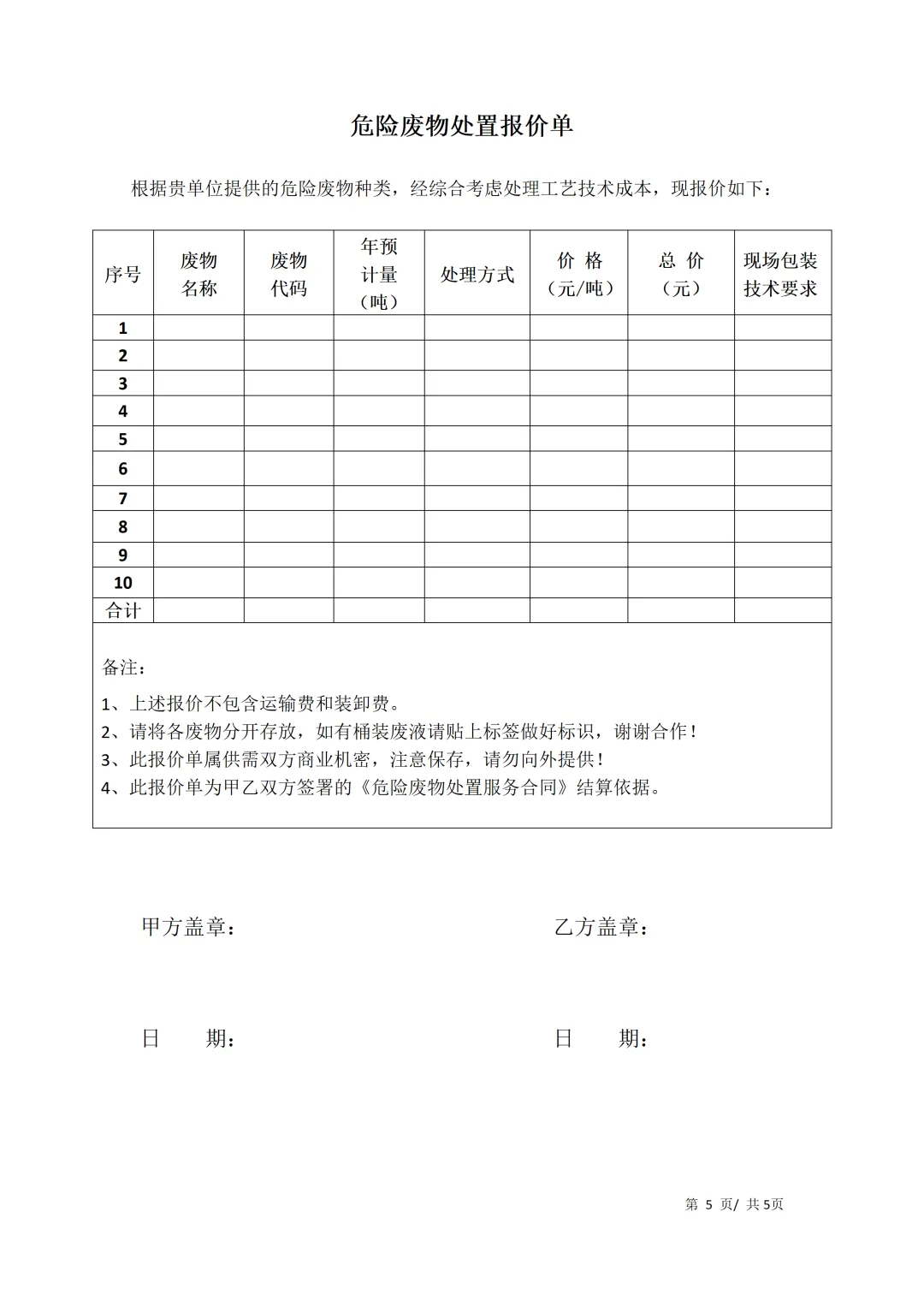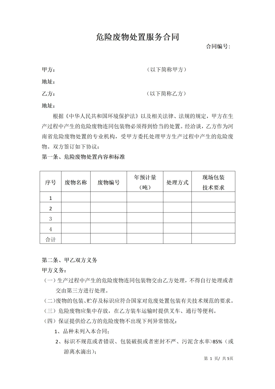 Word丨2026年危险废物协议模板