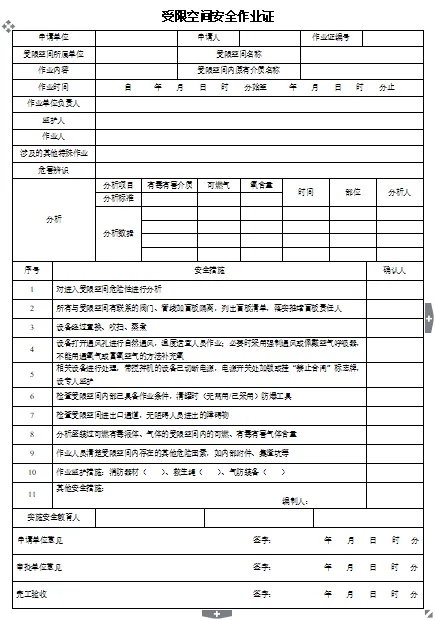 作业单位意见 签字: 年 月 日 时 分 | |||||