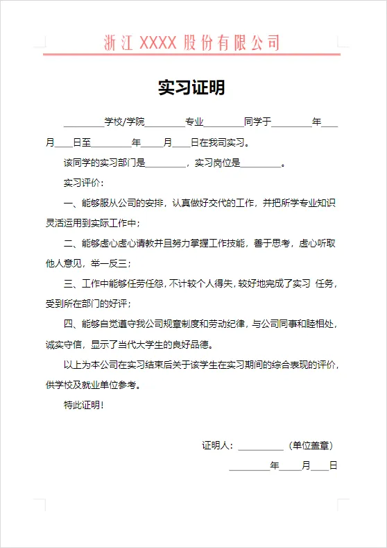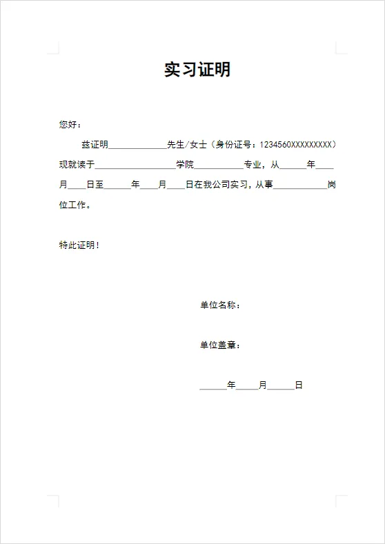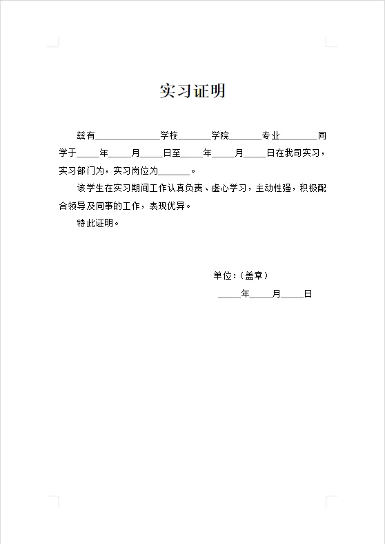 大学生实习证明模板(word电子版下载)实习证明模板关注公众号,后台消息框回复关键词“实习证明模板”领取!关注公众号,后台消息框回复关键词“实习证明模板”领取!扫码关注微信公众号 | 走心爱分享作者 | 走心