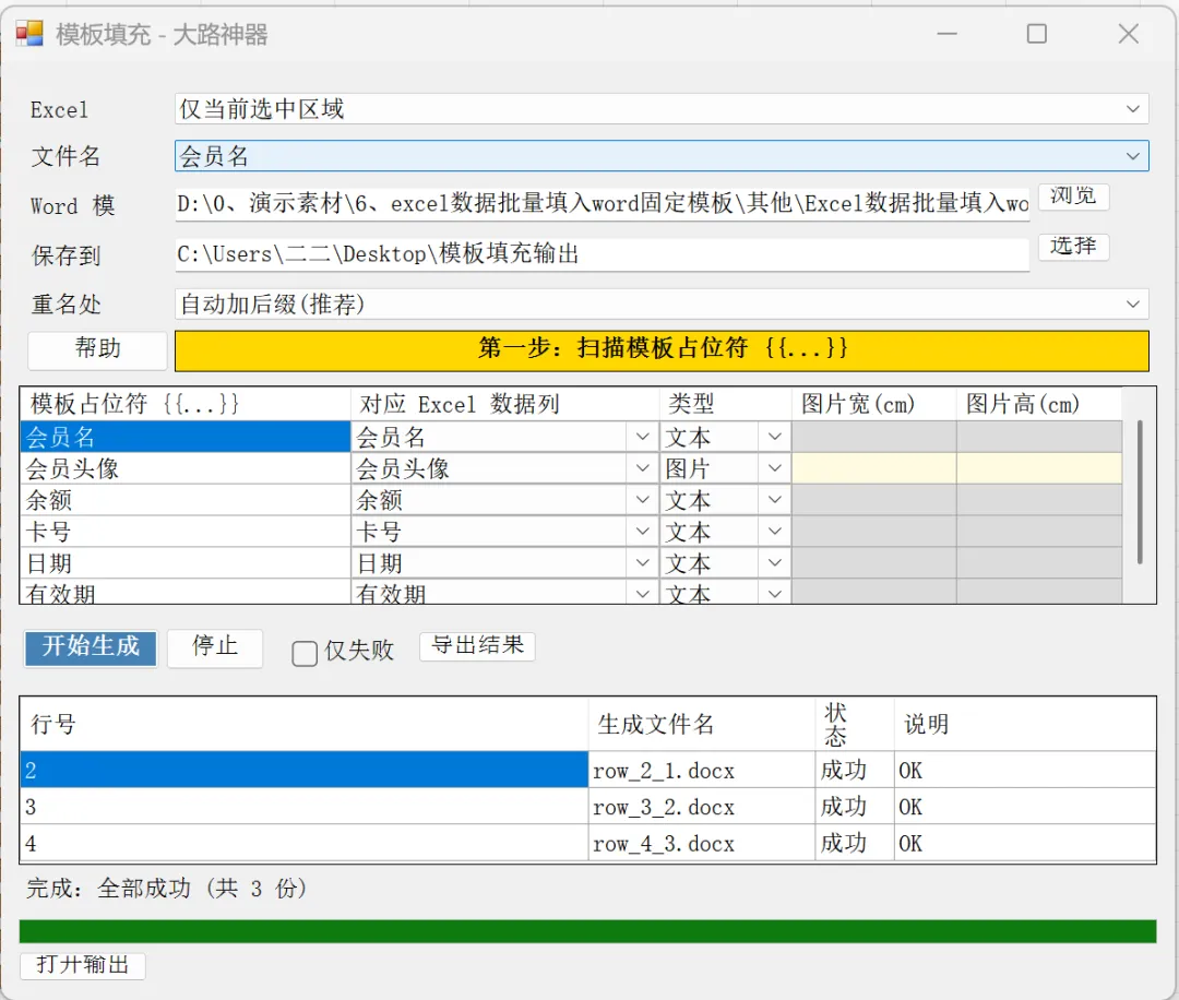 工具会识别模板里所有 {{...}} 占位符,并生成映射表。