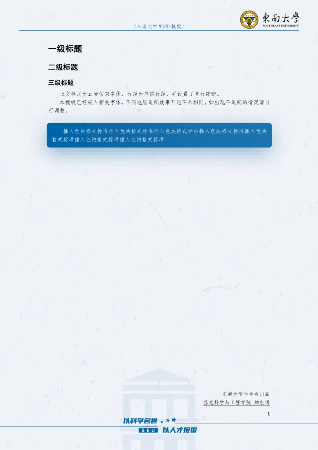 ●若你有东大相关原创Word作品,欢迎投稿至东南大学学生会宣新部邮箱: