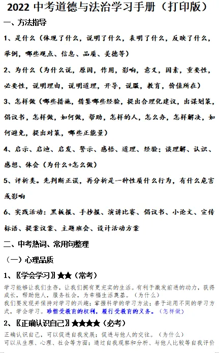 初中各科微课合辑(7.17) 2022中考道法复习核心问题归类整理