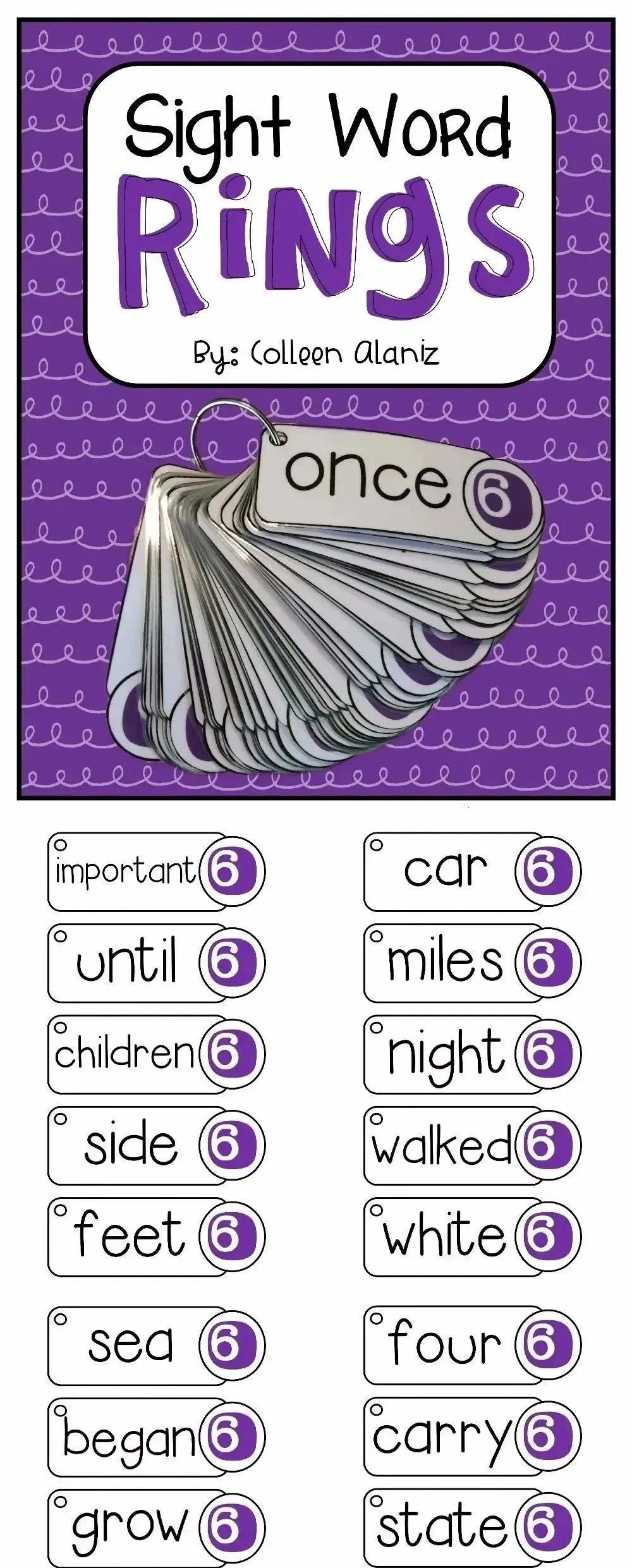 今天给大家分享一套高频词随身卡Sight Word Rings,一共有六册,原版高清PDF,可以直接打印,过塑后制作成随身卡,是一套非常好的英语启蒙教材。
