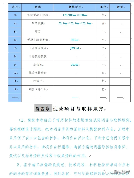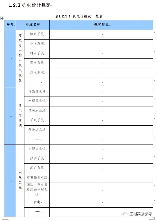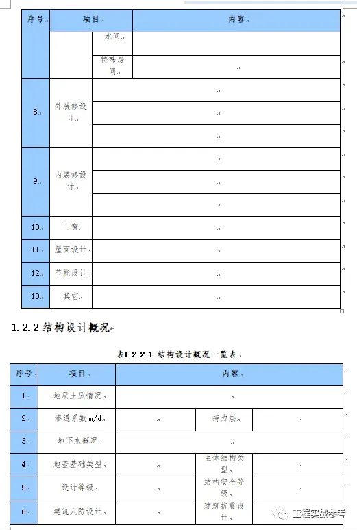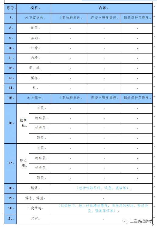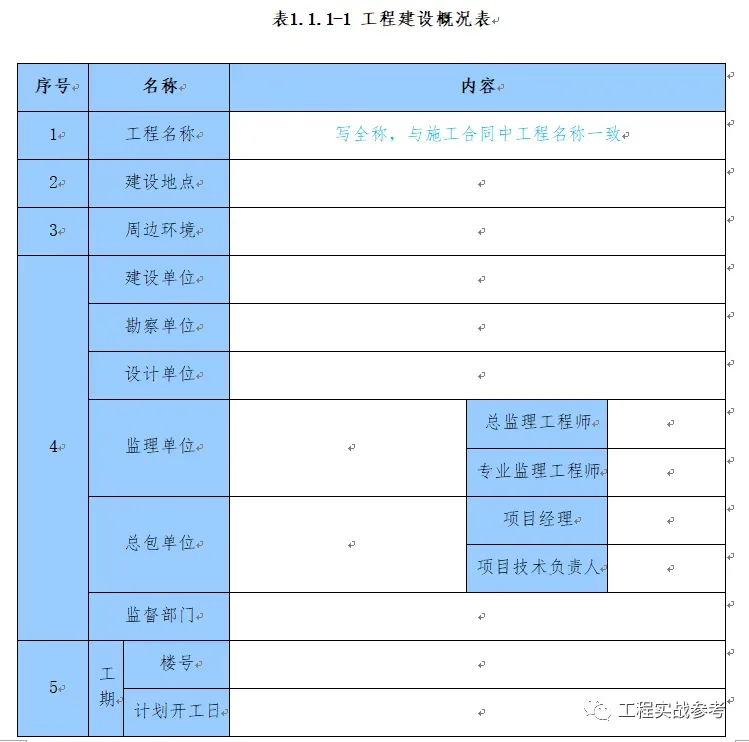 (工程概况可以借鉴本工程施工组织设计中的相关内容,各专业概况介绍重点突出设计材料做法,以便根据设计做法逐项编写材料检验项目与取样方法等,下表摘自施工组织设计编写大纲,根据各项目的规模可以做适当调整。)