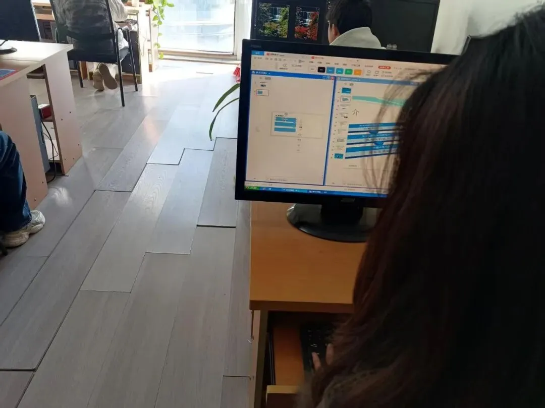 办公文秘专业学员正在上机实操学习PPT演示文稿
