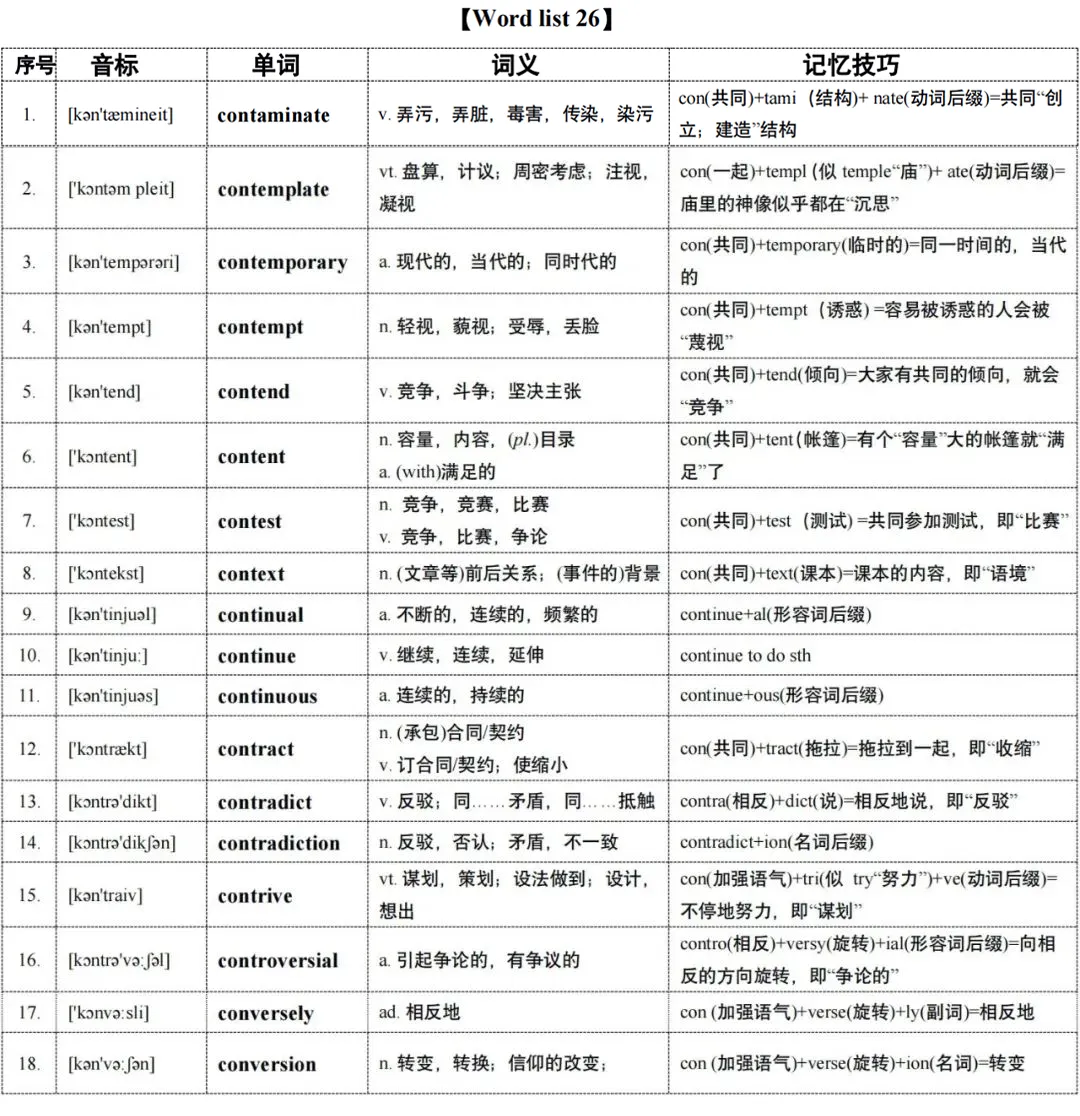 【备考2027】英语核心单词学习打卡 Day 13跟着营长一起坚持单词打卡哟^-^每天2组Word List通过词缀记忆单词坚持打卡一定会有潜移默化的进步!——适用于396经济类+199管理类联考Day 13(点击图片,查看大图)联系我们