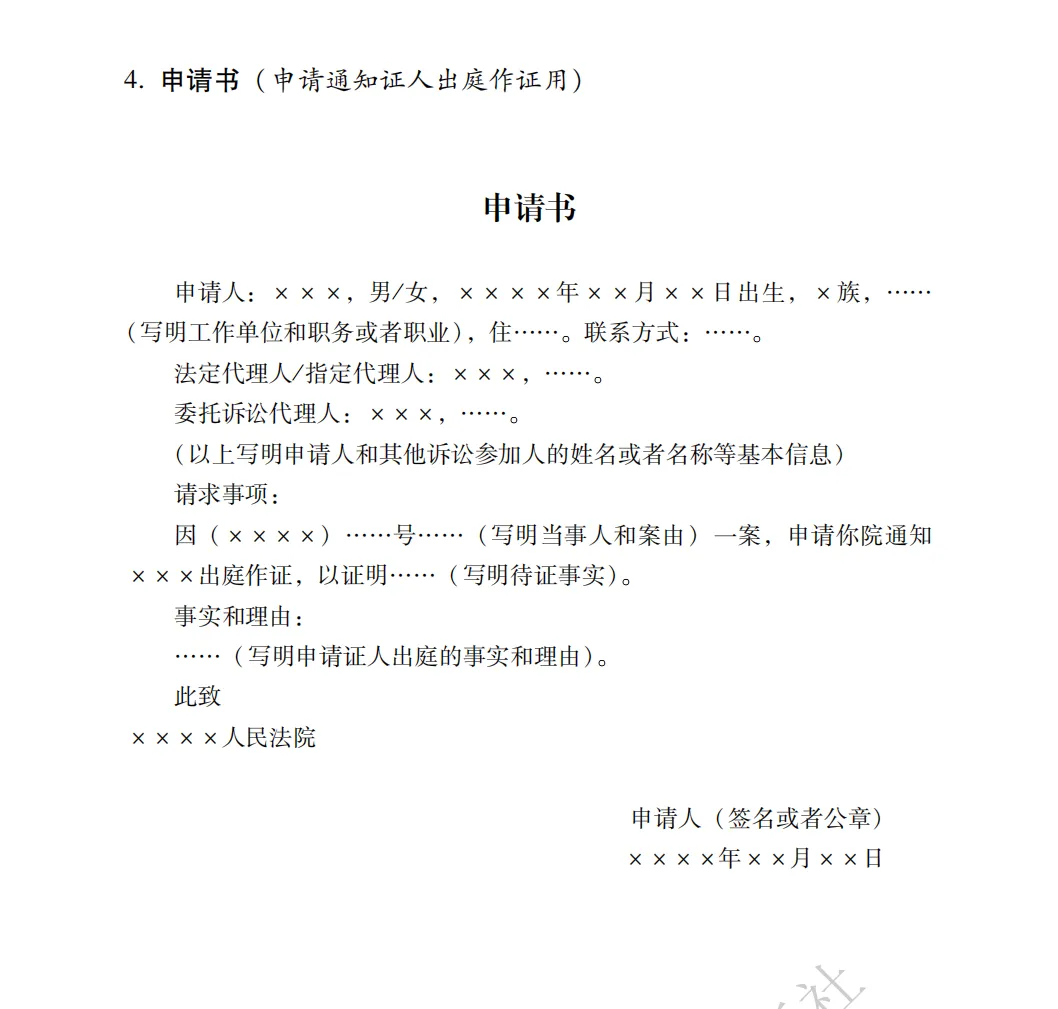 申请书模板(申请通知证人出庭作证用)