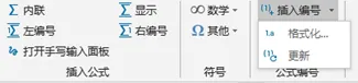 (2) mathtype的编号设置。mathtype界面的公式编号一节中,最上面的“插入编号”右侧有一个下三角,左键单击下三角,如图3-12所示。再点击格式化,得到如图3-13所示的窗口。按照自己的习惯设置公式编号即可,当文档公式很多的时候可以取消自动更新公式编号选项,提高文档运行速度,当文档写完之后再统一更新公式编号。