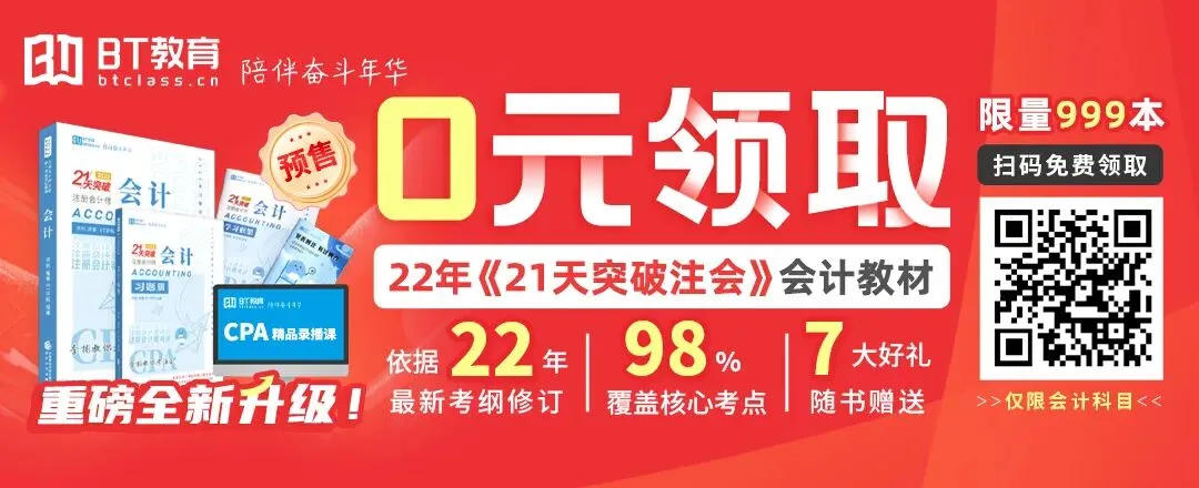 PS:想要第一时间接收最新原创备考干货的同学,可以直接关注我们的首发公众号【BT教育CPA】↓↓↓