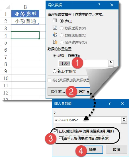 在弹出的【输入参数值】对话框中,依次勾选【在以后的刷新中使用该值或该引用】和【当单元格的值更改时自动刷新】两个复选框,单击【确定】。OK,现在就可以选择不同业务类型,来查看对应的内容啦:https://pan.baidu.com/s/1_rCYsYhPib_QvOiKBToRIQ