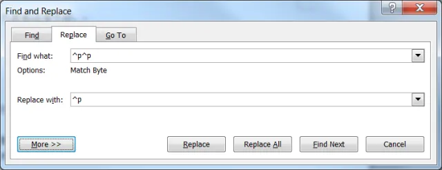 打开“编辑”菜单中的“替换”对话框,把光标定位在“查找内容”输入框中,单击“高级”按钮,选择“特殊字符”中的“段落标记”两次,在输入框中会显示“^p^p”,然后在“替换为”输入框中用上面的方法插入一个“段落标记”(一个“^p”),再按下“全部替换”按钮。这样多余的空行就会被删除。