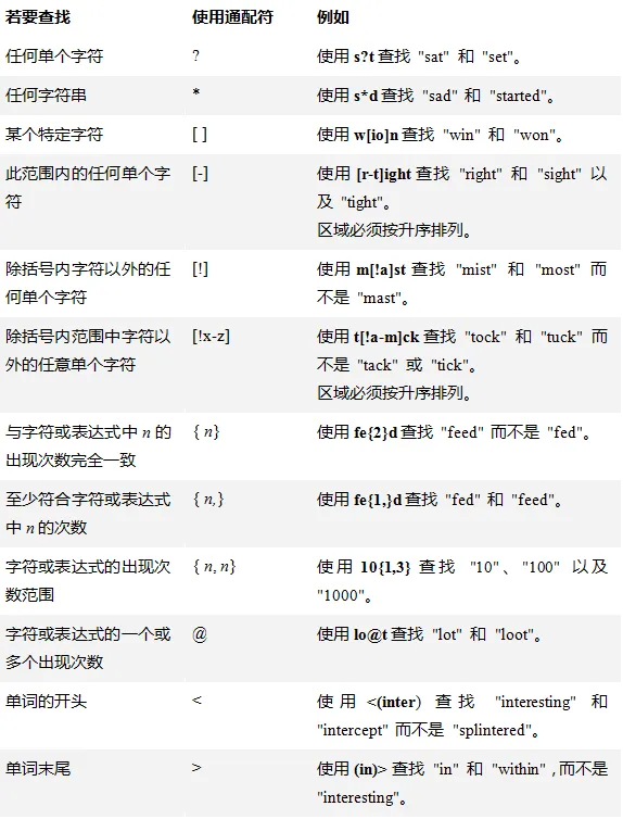 其他的通配符还有很多,可以使用通配符来搜索多个单词。