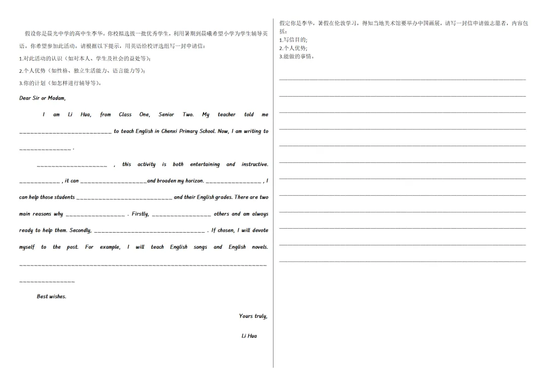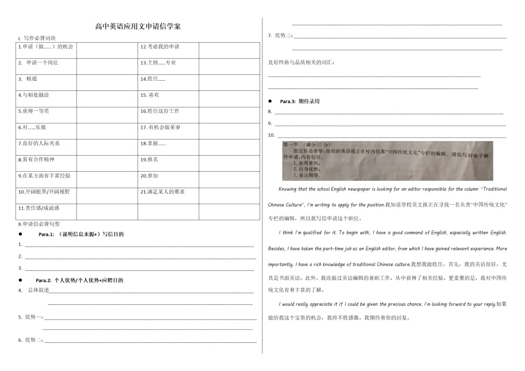 高中英语申请信零基础模板