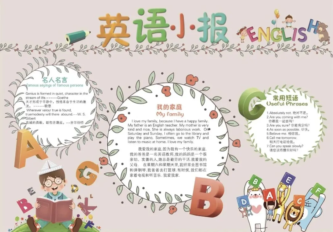 • 「学科类」:语文汉字、数学、英语手抄报(含黑白线稿,可直接涂色);