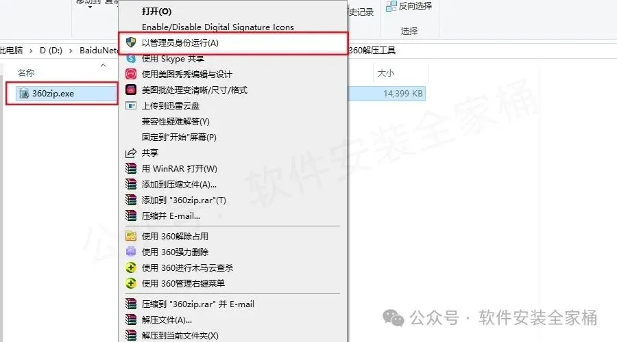 1.右键点击【360zip】,【以管理员身份运行】。