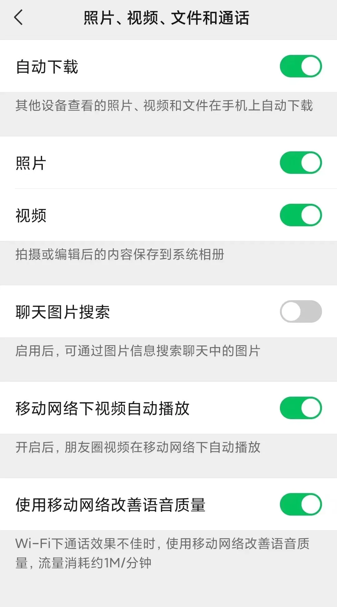 此外,第一个自动下载按钮也选择关闭,也就是说我们在其他设备上查看的视频照片不会自动下载。
