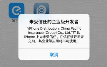 Q1:IOS系统下载后不能使用,提示“未受信任的企业级开发者”,如下图。