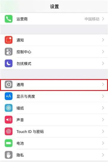 2、找到“通用”栏并进入“通用”页,可以看到“设备管理”栏。