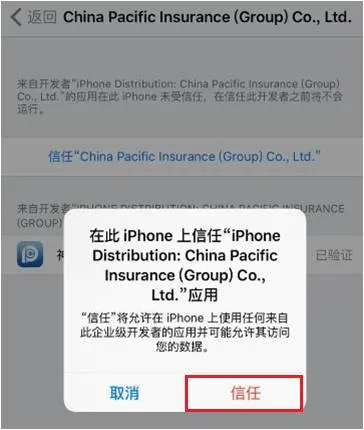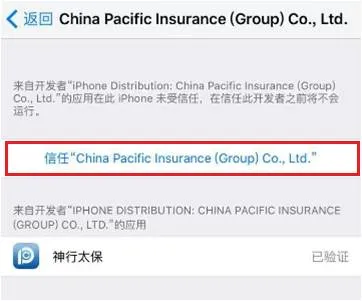 4、点击屏幕中间的蓝色文字选择“信任……co.,Ltd.”,如下图: