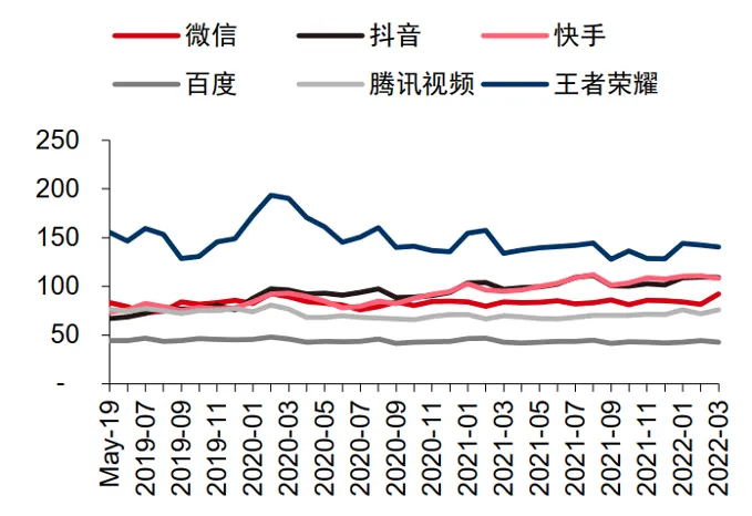 图为主要APP 用户时长(分钟/天),资料来源:Questmobile,中信证券研究部