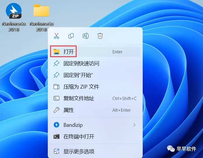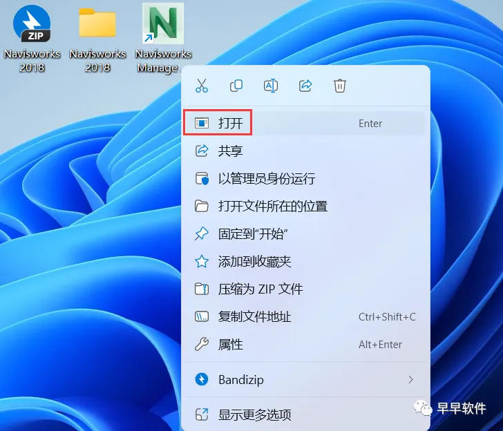 10、回到桌面,右键桌面上的【Navisworks 2018软件图标】,点击【打开】