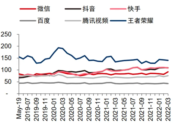 图为主要APP用户时长(分钟/天),资料来源:Questmobile,中信证券研究部
