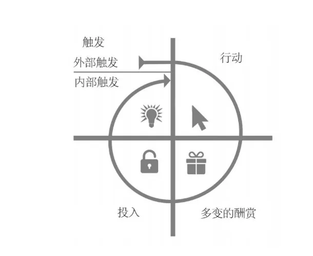 尼尔·埃亚尔在《上瘾:让用户养成使用习惯的四大产品逻辑》这本书中提出了一个上瘾模型,主要包括触发、行动、多变的筹赏和投入四大阶段,它们环环相扣,缺一不可。