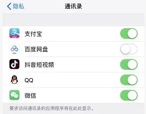 打开隐私→根据服务如通讯录