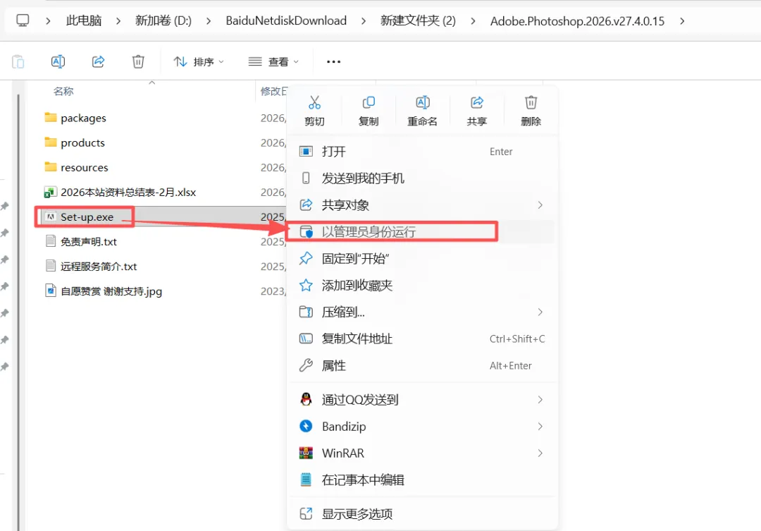 2、打开解压后的【Adobe.Photoshop.2026.v27.4.0.15】文件夹内,找到【