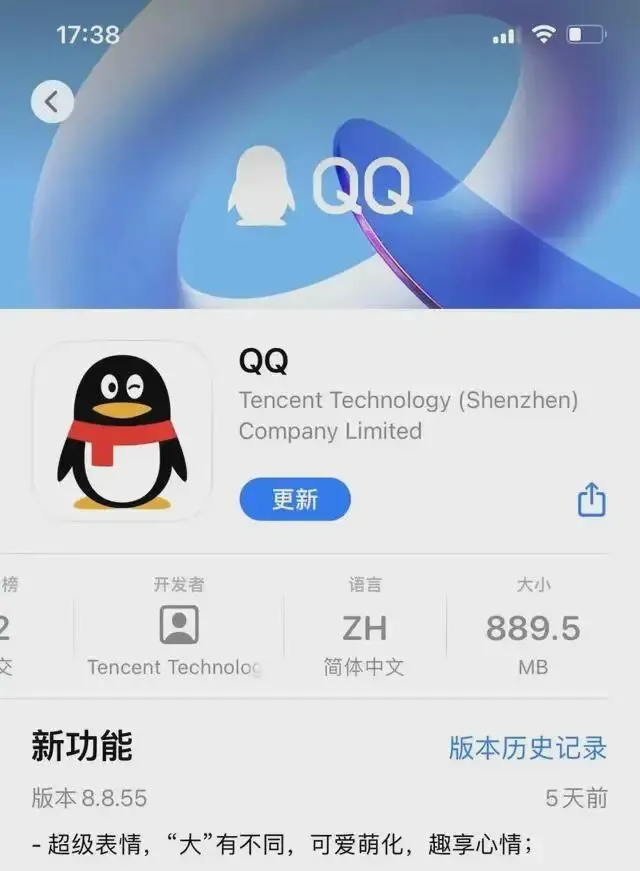 手机QQ安装包接近1GB引热议 内置虚幻4引擎不久前,手机QQ发布8.8.55版本升级,软件显示,Android版安装包大小为371MB,而令人惊讶的是,iOS版则直接逼近1GB,达到了889MB。