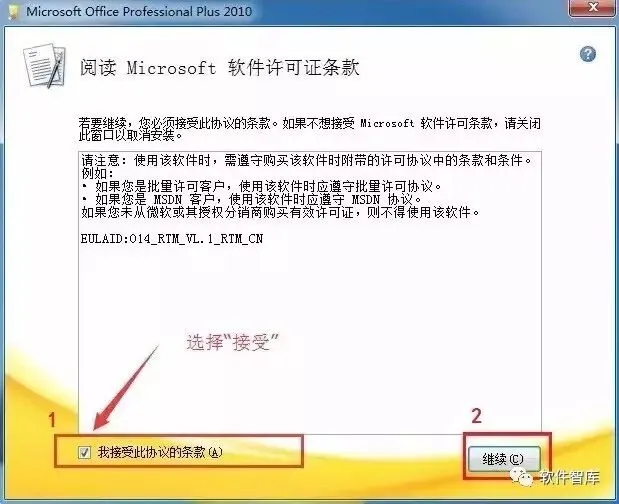2.勾选“我接受此协议的条款”,点击【继续】