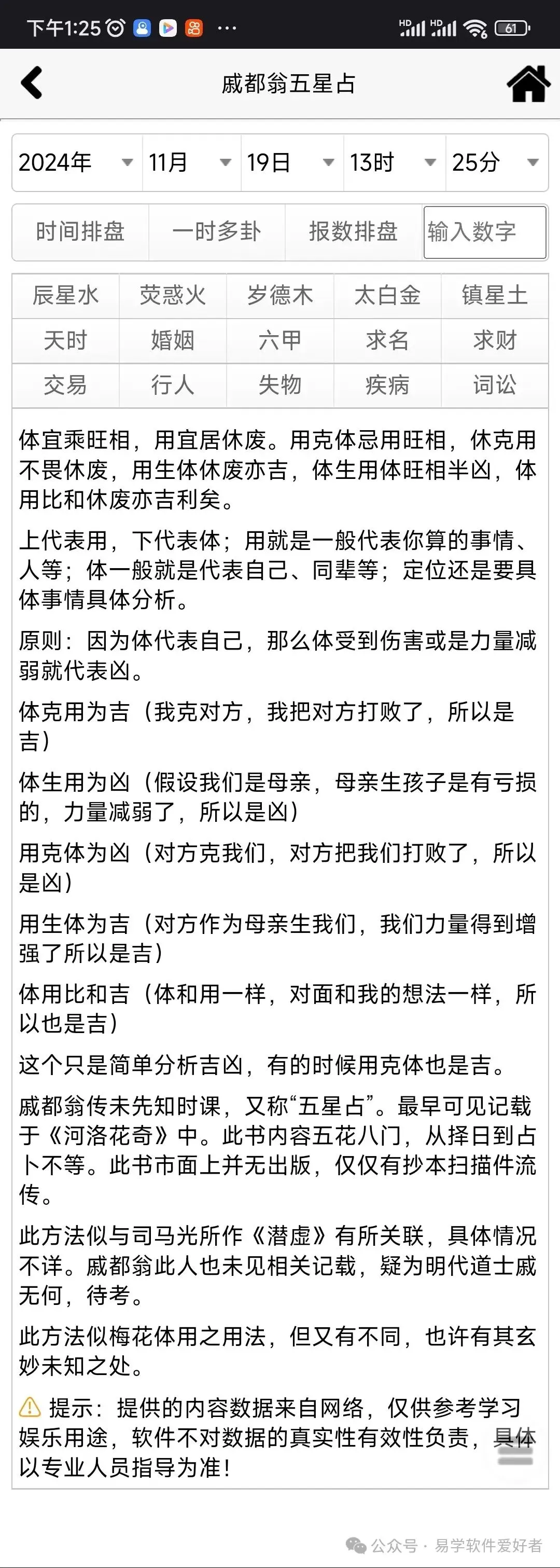 手机版戚都翁五星占排盘软件,卖38元,需要软件联系微信:A-118774