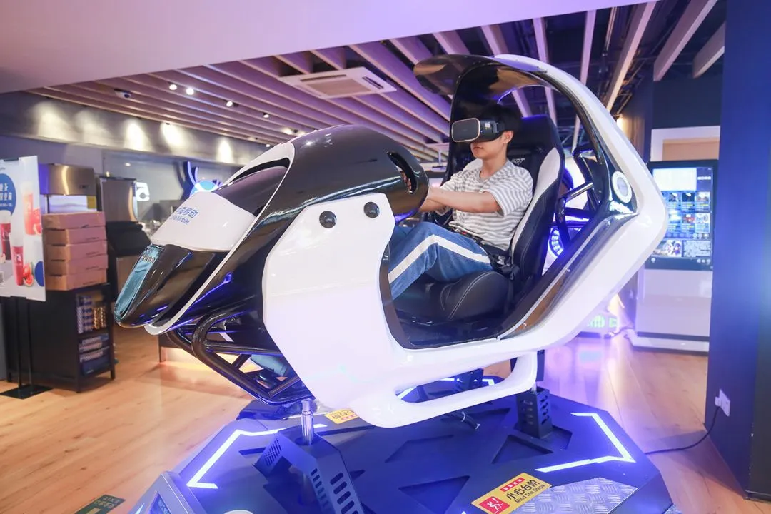 这个设备看起来非常酷炫,但实际上跟刚刚的VR赛车差不多。不同的是,里面可以选择多种VR游戏。
