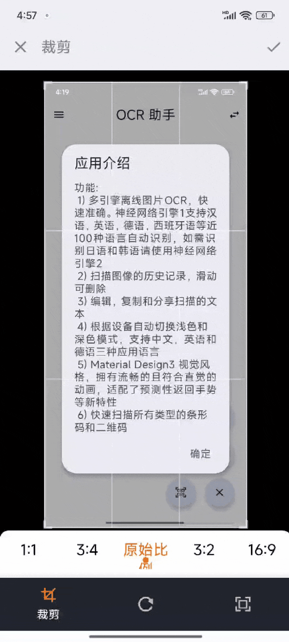 1)多引擎离线图片0CR,快速准确。神经网络引擎1支持汉语,英语,德话,西班牙语等近100种语言自动识别,如需识别日语和韩语请使用神经网络引擎2