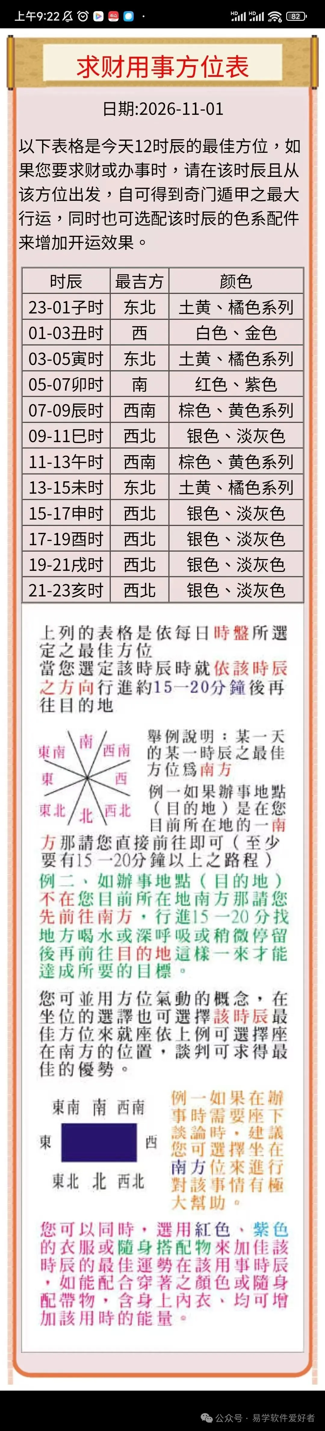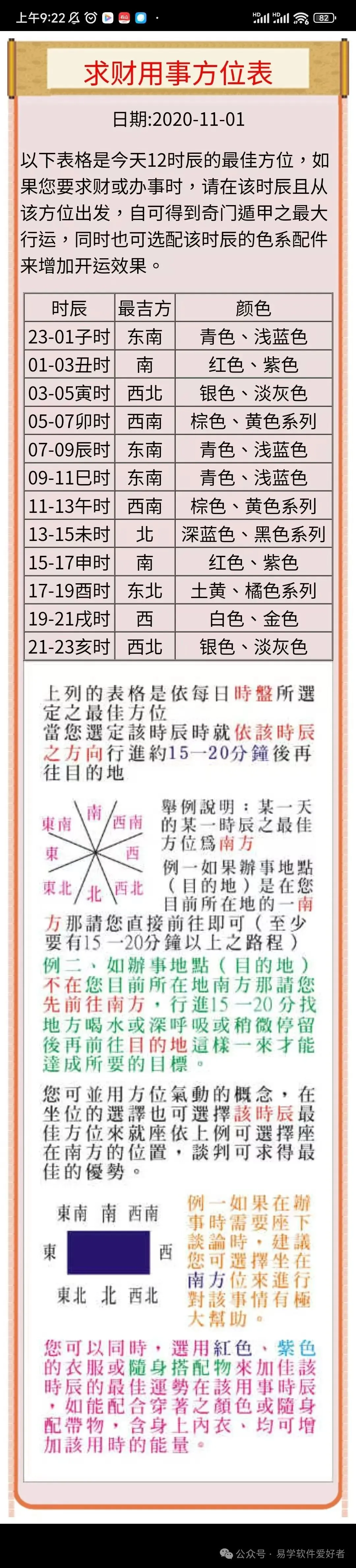 手机版奇门求财用事查询软件手机版奇门求财用事查询软件,卖38元,加微信:A-118774软件介绍: 软件输入时间可以查询每天12时辰的最佳方位,如果您要求财或办事时,请在该时辰且从该方位出发,自可得到奇门遁甲之最大行运,同时也可选配该时辰的色系配件来增加开运效果。