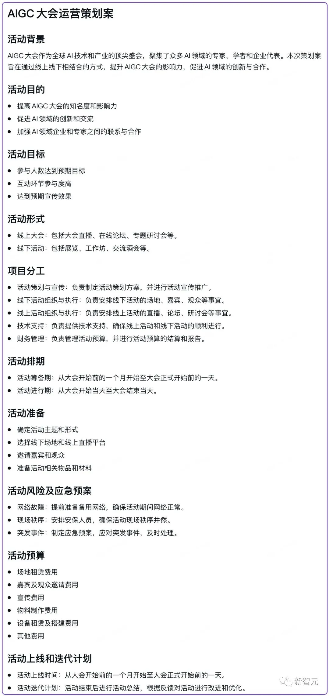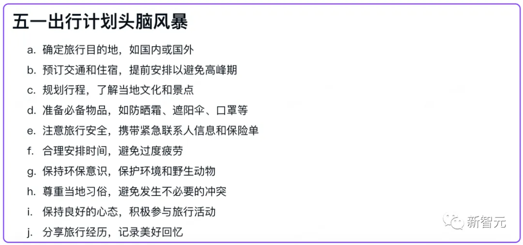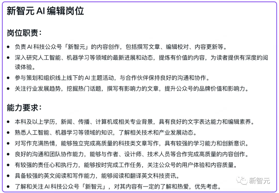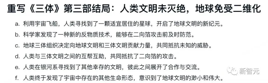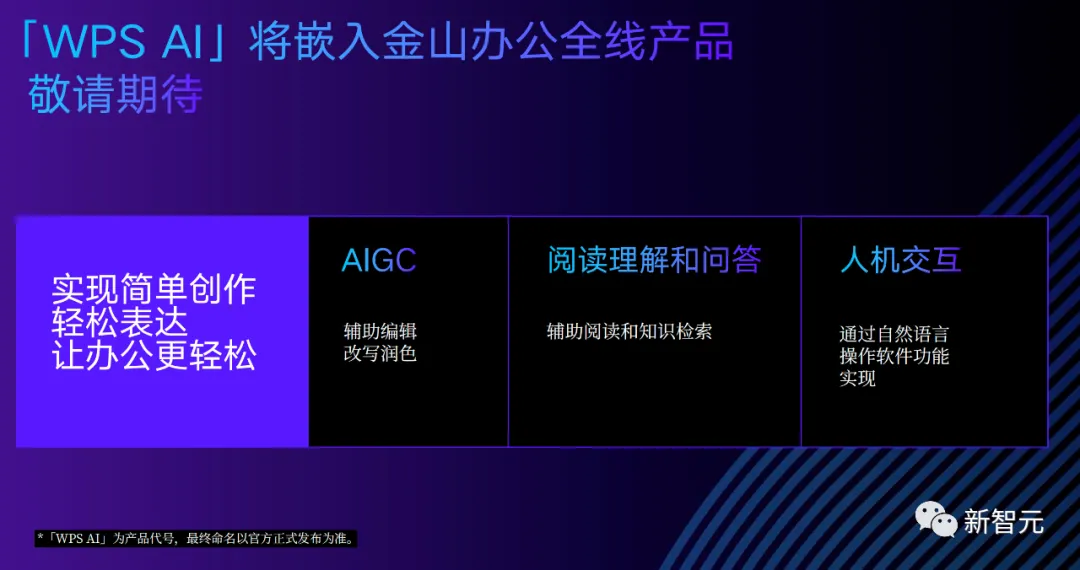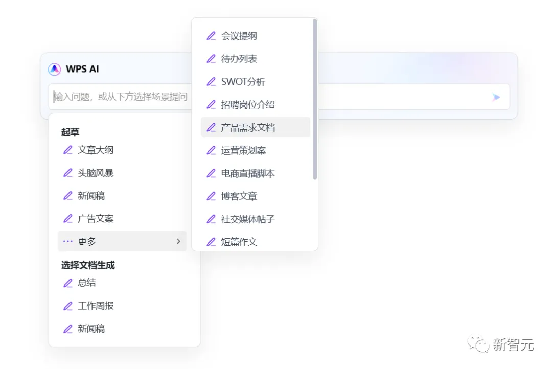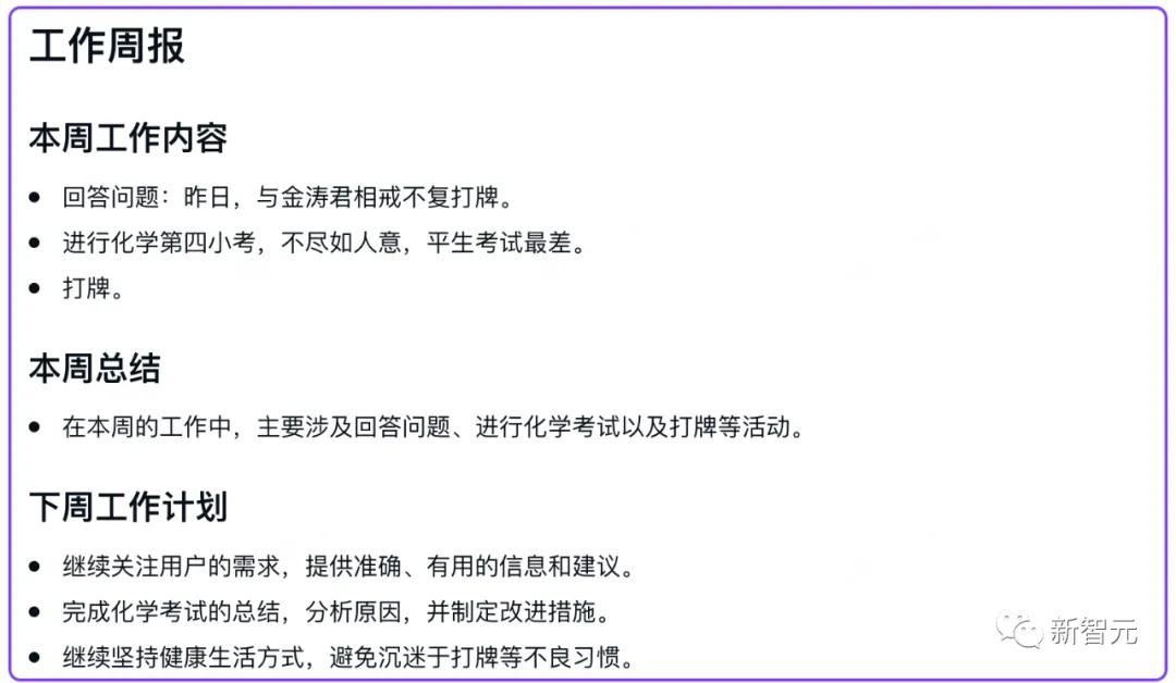 同样的,如果觉得内容还是不够,只需选择「扩充篇幅」即可进行扩写。 相比起来,老大哥Notion在中文环境下的能力,就要逊色不少了。 什么,大纲还得自己补充,太麻烦了!干脆整篇新闻稿都替我写了吧。 不错,已经初具规模了,调整一些细节,插一波演示配图,今天的工资不就有了嘛。要是运气好多出几个爆款,日入过万还真不是玩笑。 自从小编用上了WPS AI,以前可能要干好几天的事,现在几个小时就能搞定,这才是真正的解放生产力,剩下的时间当然就是: 快乐地摸鱼 提升各项技能、成为一个更优秀的打工人。 周报「闭眼」写 不知从何时起,国内的大厂小厂们都开始流行起这样一个优良传统——写周报。 这个传统深得领导们喜爱,连大洋彼岸的马斯克都有模有样地抄了去,现在连推特工程师都得写周报了。 但是咱们打工人,可就有苦说不出了。日报、周报、月报,重复的东西不停地写,纯属浪费生命啊。 选择「工作周报」,再把你的日报选上,它就帮你可以自动整合了。 没错,这就是AI最该做的事——消灭重复任务,为人类节省出更多的黄金时间,用于生活和更有价值的工作。 咱们来看看,把经典的胡适读书打牌日记按日报的形式传给它。 WPS AI非常聪明,在下周工作计划中,明确向胡适提出「避免沉迷打牌」,可以说是十分爆笑了。 运营策划再也不用担心烧CPU 对于运营来说,有一件相当棘手的事儿——策划各种活动和大会。 这其中,要干的事儿可太多了,场地、设备、物料、邀请媒体……几十项任务要去布置,方方面面都要照顾周全,运营狗的CPU都干烧了,恨不得能分成八瓣。 大Boss一声令下,让你给这次AIGC大会出个运营策划案。 任务明确后,就可以分配到个人了,包产到户,清晰明了。 招聘文案一键搞定 虽然招人是个大事,但实在不想把太多精力和时间放在写文案上。 在此,给新智元打波广告,选中「招聘岗位介绍」,输入岗位「AI科技媒体新智元编辑」,一个有模有样的招聘文案立刻出炉。 顺便,让WPS AI生成一份格兰芬多学院黑魔法防御术教师的招聘广告吧。 小编的鸡腿保住了 再让它帮我修改个病句「语文对我很感兴趣。」,看看效果如何? 「为了避免今后不再发生类似的事故,我们必须尽快健全安全制度。」 不得不说,它的推理能力也是强的一批,看出了避免本身就是否定,因此将「不再发生」换成了「再次发生」。 小编还意外地发现了,「改正病句」这个功能还能帮你纠正错字。 为了考考它的翻译能力,我们还拿出了GPT-4技术报告的一段摘要来测试: We report the development of GPT-4, a large-scale, multimodal model which can accept image and text inputs and produce text outputs. While less capable than humans in many real-world scenarios, GPT-4 exhibits human-level performance on various professional and academic benchmarks, including passing a simulated bar exam with a score around the top 10% of test takers. 冒泡排序、初中试卷,就一句话的事儿 脑洞大开:重写《三体》拯救地球 最后,再让我们试试WPS AI的「头脑风暴」功能,看看它的脑洞有多大。 在它写的新《三体》三中,人类和三体人之间互帮互助,还和银河系其他的文明展开了合作和交流,这是把整个「黑暗森林」理论都给颠覆了啊。 选择WPS AI的创意故事功能,让它写一篇曹操和关羽的cp文。 它写的结局是:曹操将皇帝之位让给关羽,自己退隐山林,过上闲云野鹤的生活。嗯,这一定是在平行宇宙中。 虽然现在距离五一假期还有一周多的时间,但小编每天加急赶稿,已经无心工作。 不如,让WPS AI给我头脑风暴一个「五一出游计划」。 从确定目的地、预定车票和酒店、规划行程、再到分享旅行经历,是非常细心到位了。 由上可见,在新一代WPS AI中,AI生成的内容直接被嵌入到文档正文,并能按照并能按照当前文档所能支持的格式进行实时渲染。 此外,它还支持多轮对话,通过多次自然语言的输入控制内容生成,可以大大提高人们创作效率。 以上是金山办公在轻文档中集成了新一代WPS AI的最新能力,未来还会有更多。 因为,不论是文档,还是PPT、表格、PDF,办公过程的核心都是「文字」,而其他配图、版式、颜色都是再围绕文字去做功课。 你所见的轻文档能力,背后依靠的是MiniMax的大模型。这是一家同时拥有3种多模态能力的创业公司。 至于大模型的选用上,金山办公称未来也会根据具体使用场景,以及用户体验来调整。 因为不同场景下,各个模型能够激出来的能力也是不同的。 过去35年里,WPS用户市场份额逐渐扩大。基于强大的用户数据,金山办公最大的优势就是对中文、用户场景的理解是非常透彻的。 在轻文档上线之前,金山办公已经在内部迭代了多个版本,每周都在改进产品。 去年12月,金山办公就开始全员拥抱AI,全力投入研发。 金山办公高级副总裁毕晓存表示,我们现在的规划是在两条线并行。一条线是轻文档,后续再延续到表格和演示;另一条线是促进云端的协作。 WPS是端,协作是云,金山办公要做的就是把端和云进行很好的整合。 作为国内办公赛道的头部厂商,金山办公在AI领域的方向已经十分明确。 金山办公的副总裁姚冬表示,「WPS AI」未来发展将锚定三个战略方向。 第一个方向是AIGC,主要是辅助编辑、改写、润色,帮助用户生产更优质的文章。 第二个方向是阅读理解和问答,基于已储备的语料做问答式的交互,辅助阅读和知识检索。 第三个方向是人机交互,基于大语言模