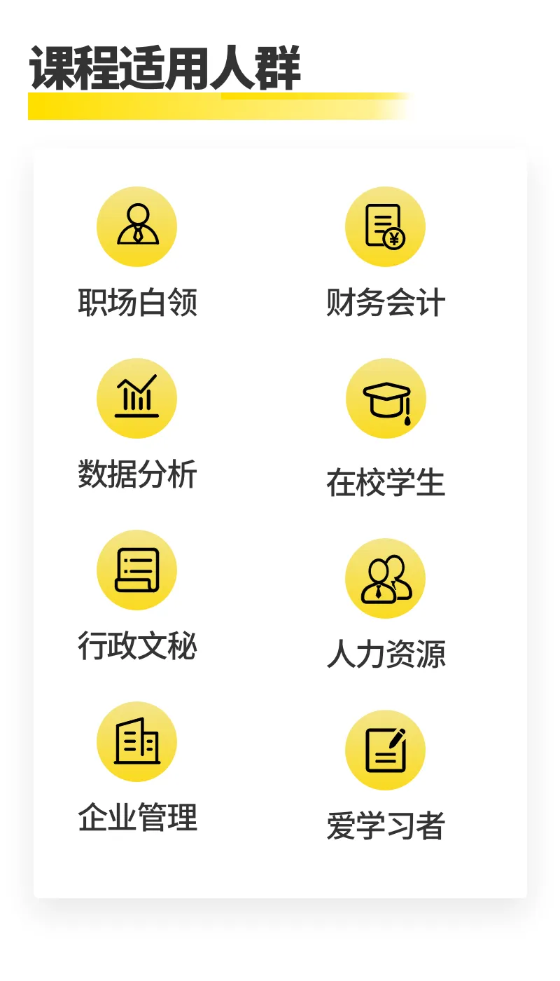 我们在使用office的时候,经常会遇到各种问题,然后找视频教程,网上教程太多,全然不知道学习哪一个,然后搁置了学习计划,再然后又遇到问题……与其零碎的查找各种使用教程,不如来看看更全面系统的课程!
