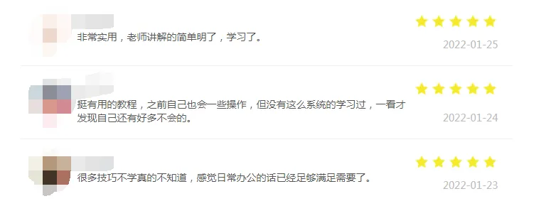 “老师讲的细致,边操作边讲解还有练习表格,学习到很多”