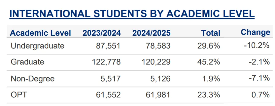 根据《2024-25年美国门户开放报告》显示,本学年赴美留学的中国学生中,就读硕士学位的占比达到了45.2%,已经连续三年超过的本科学生的人数占比。