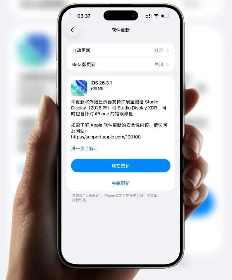 2026年3月5日凌晨,苹果公司向用户推送了iOS 26.3.1、iPadOS 26.3.1及macOS 26.3.1正式版系统更新。此次更新未经公开测试,直接面向所有兼容设备发布。