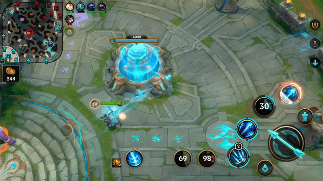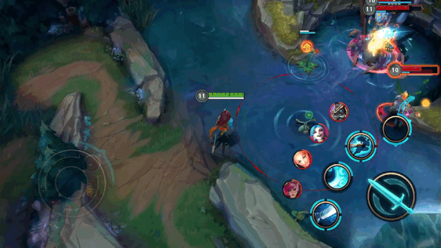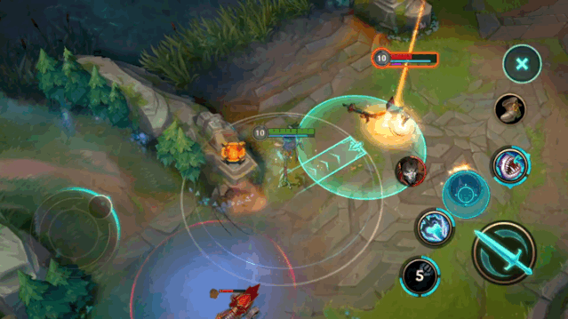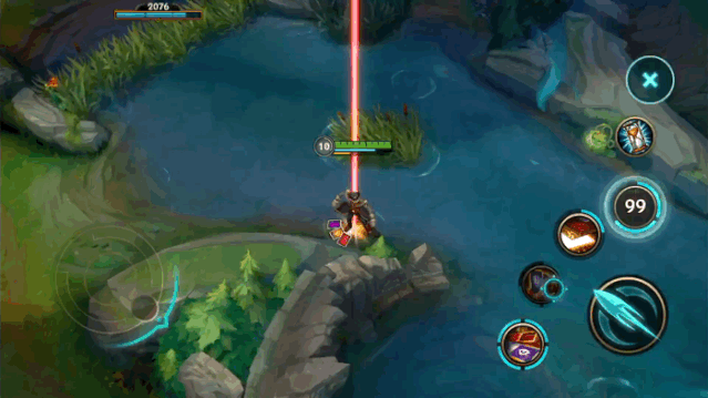 为了适合手机端的操作,《英雄联盟》手游版在尽量还原端游之外,也针对手机做出了一些改动,比如可以调整方向的寒冰大招: