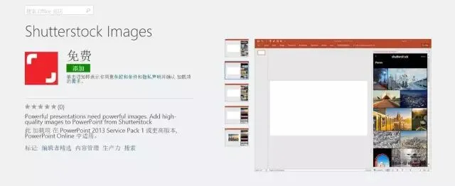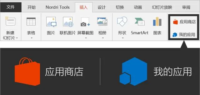在Office 2013或2016版本中,【插入】工具栏下多了一个新功能——应用商店,以PPT为例: