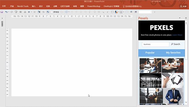 添加此应用后,你的PPT从此就自带了一个超屌的高清图库,而且可商用!操作也非常简单,直接点击右侧栏的图片就能取出来: